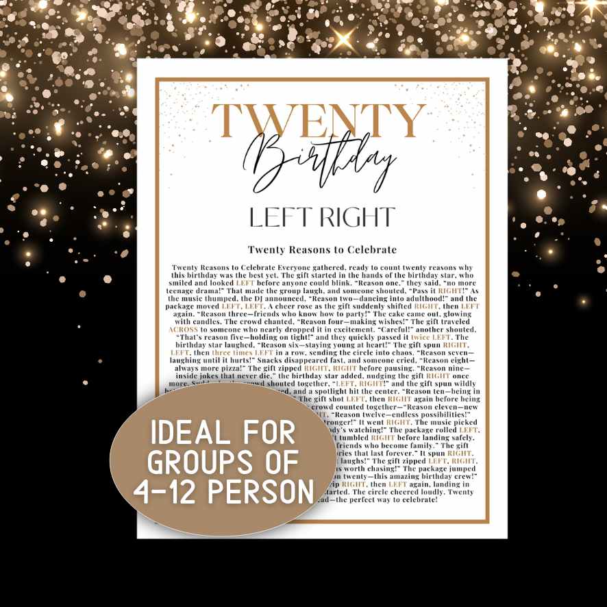20th Birthday Left Right Game Printable, Fun Party Story Game for Guests