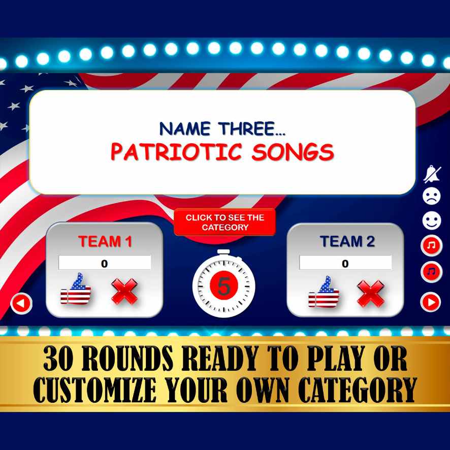 ✔1 GAME WITH 30 ROUNDS, ready to play, inspired by the popular TV SHOW 5 Second Rule. Or you can create your own questions and answers; it’s very easy to customize.