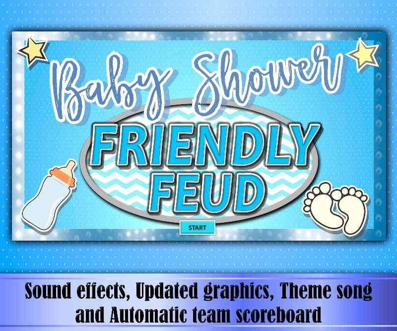 Game with 20 Rounds Baby Shower Boy, ready to play, inspired by the popular TV show Family Feud. Or you can create your own questions and answers; itâs very easy to customize (you only have to click on the text box and write your own question)