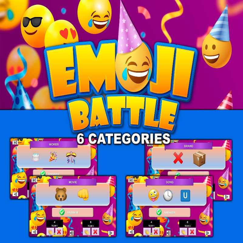 This Emoji guess game is a PowerPoint Game where contestants try to guess the words represented by emojis. The team with the highest score wins the game.