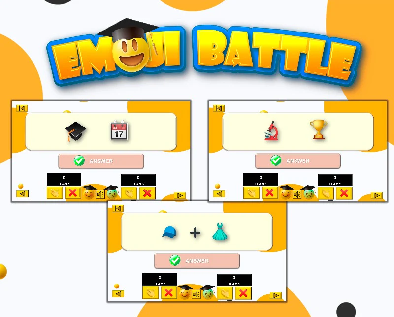 If you like fun, you've found the right game. Test your knowledge 😍🎮🧩🏆 about emojis, your logic, and your reasoning skills with this Fun Graduation Game Guess Emoji Battle.